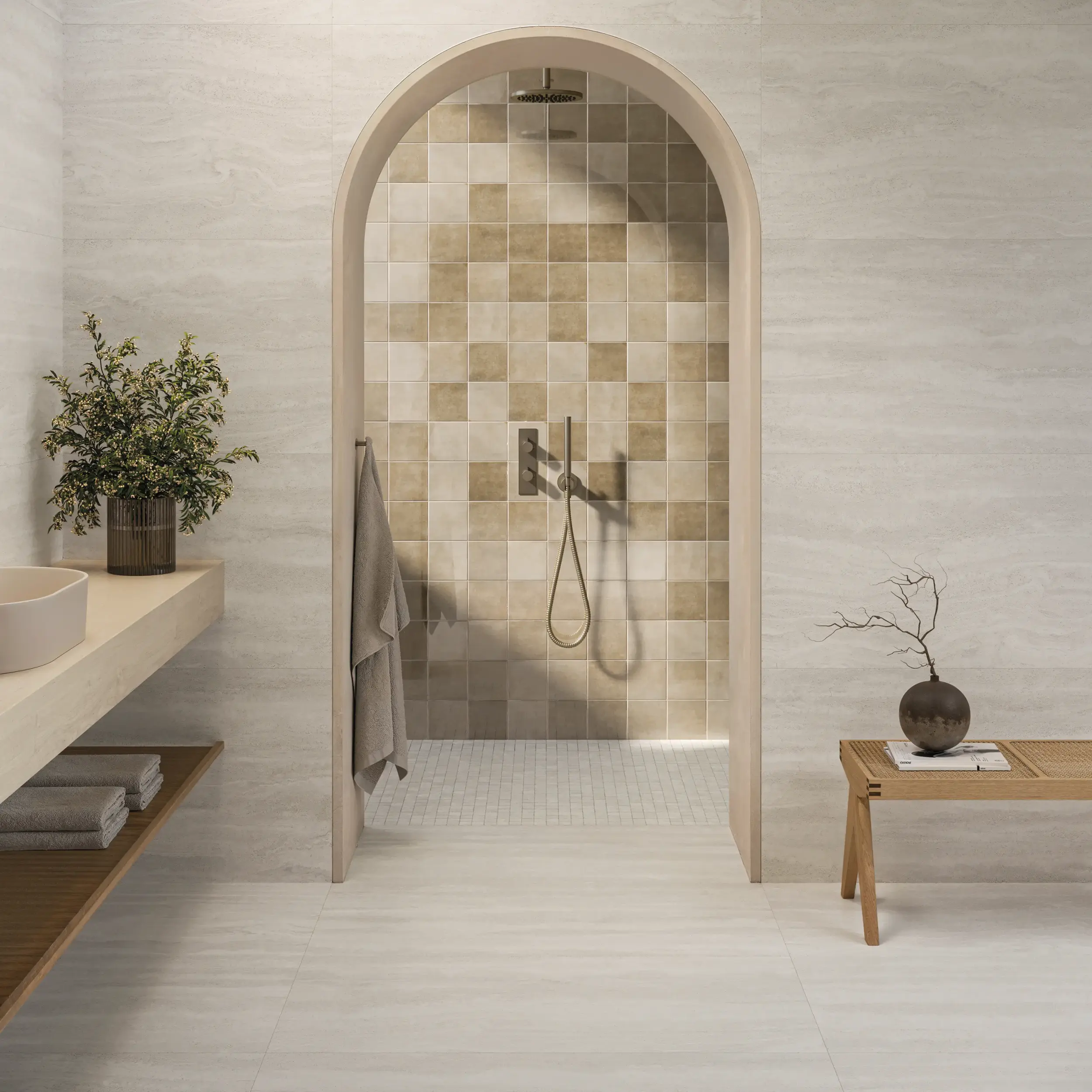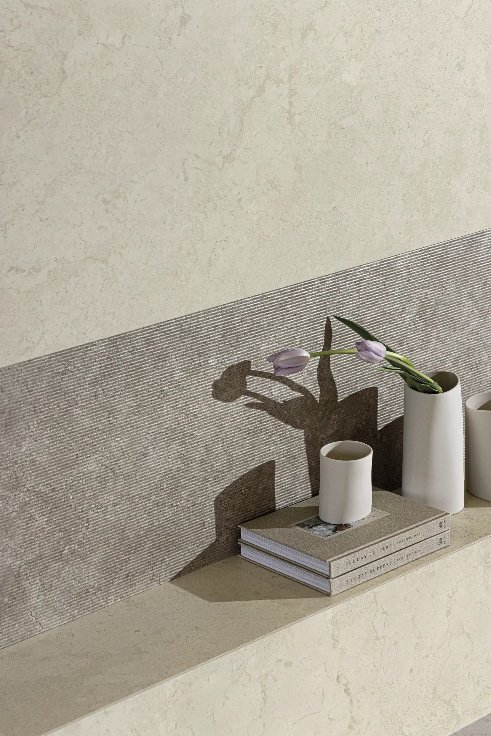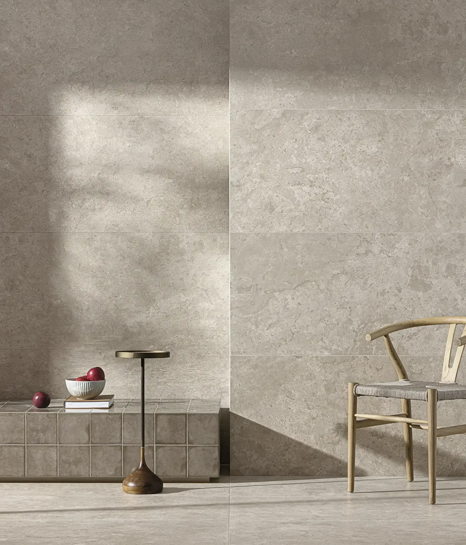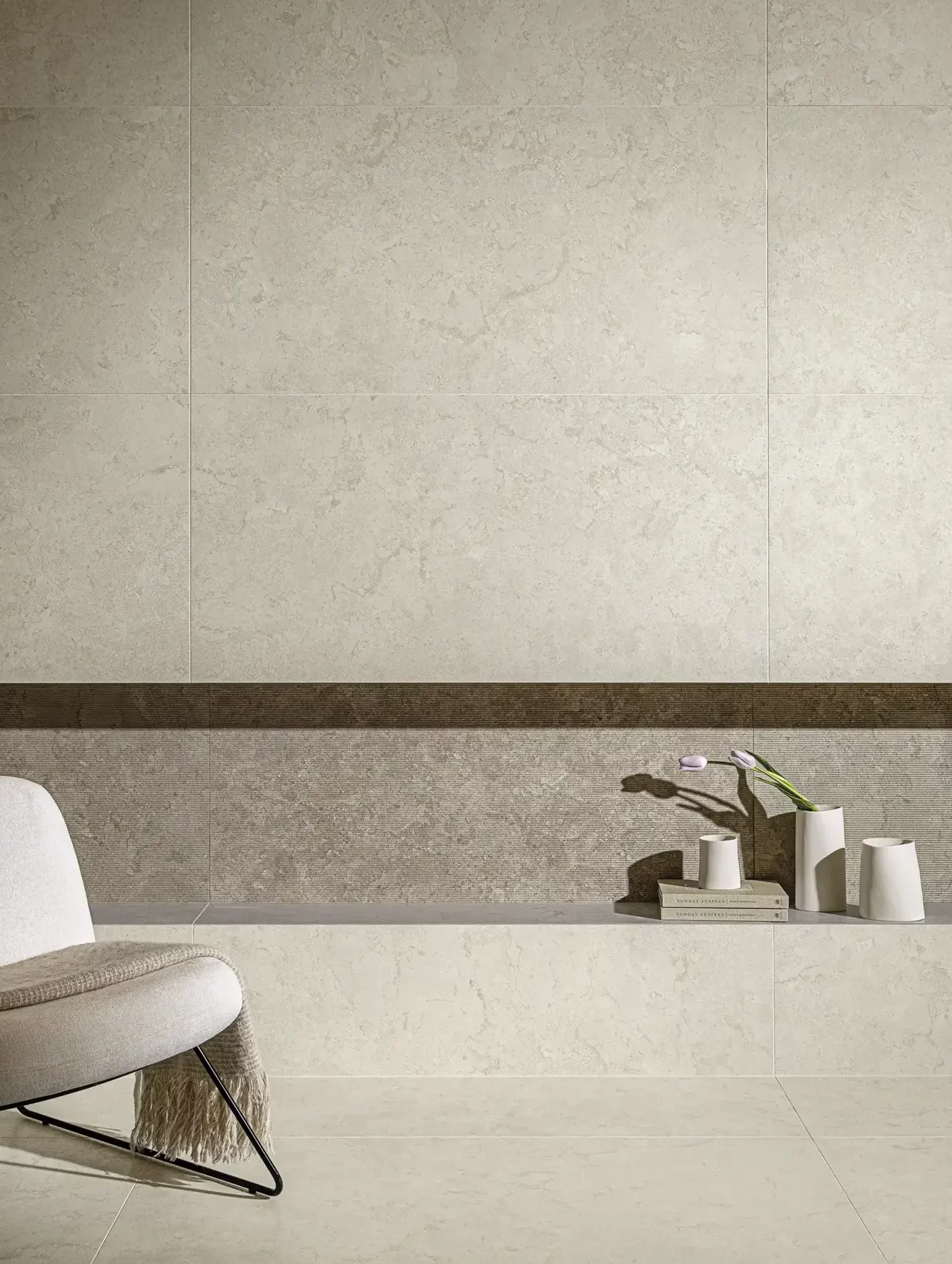 Aeterna X expands the language of travertine through a bold crosscut interpretation designed to mix and match seamlessly with the classical vein cut collection. Horizontal striations sweep across the surface, breaking linearity and revealing the stone’s layered depth. The result is travertine with rhythm, a broader architectural movement that enhances spatial continuity and brings a modern presence to commercial compositions.