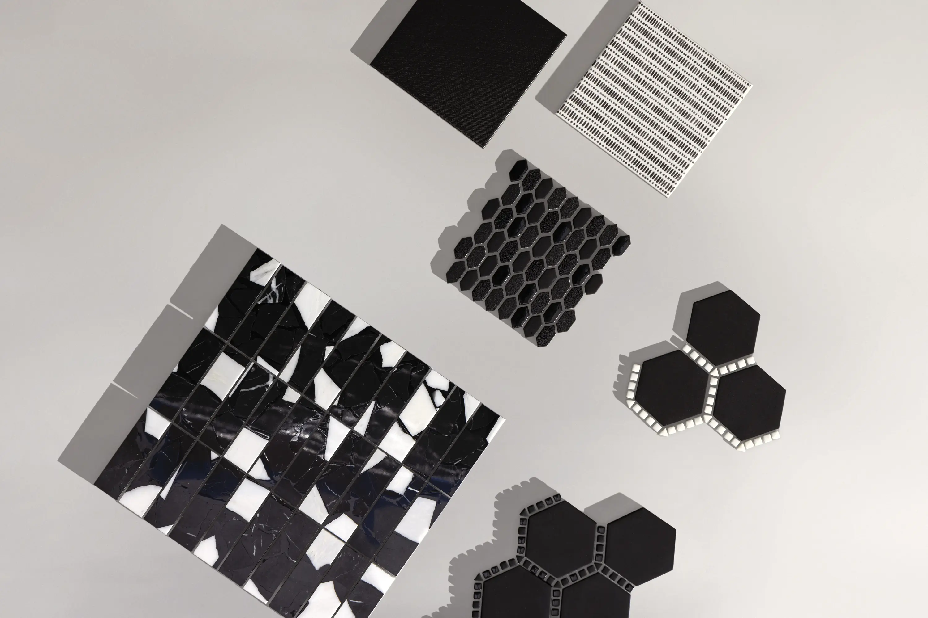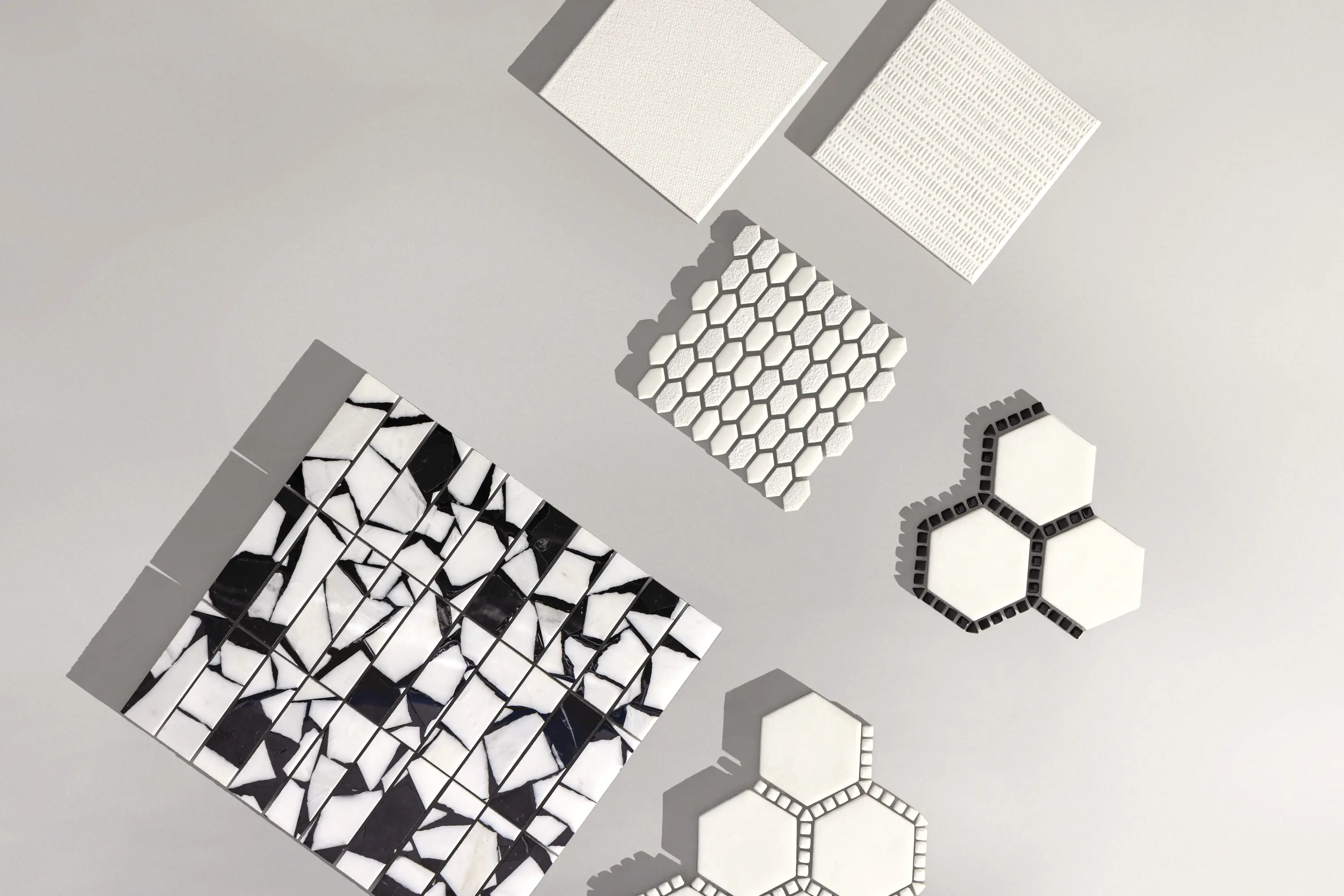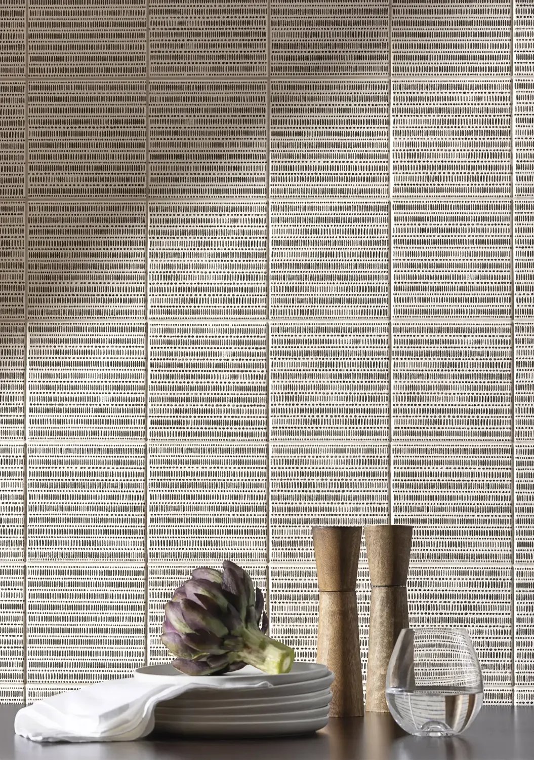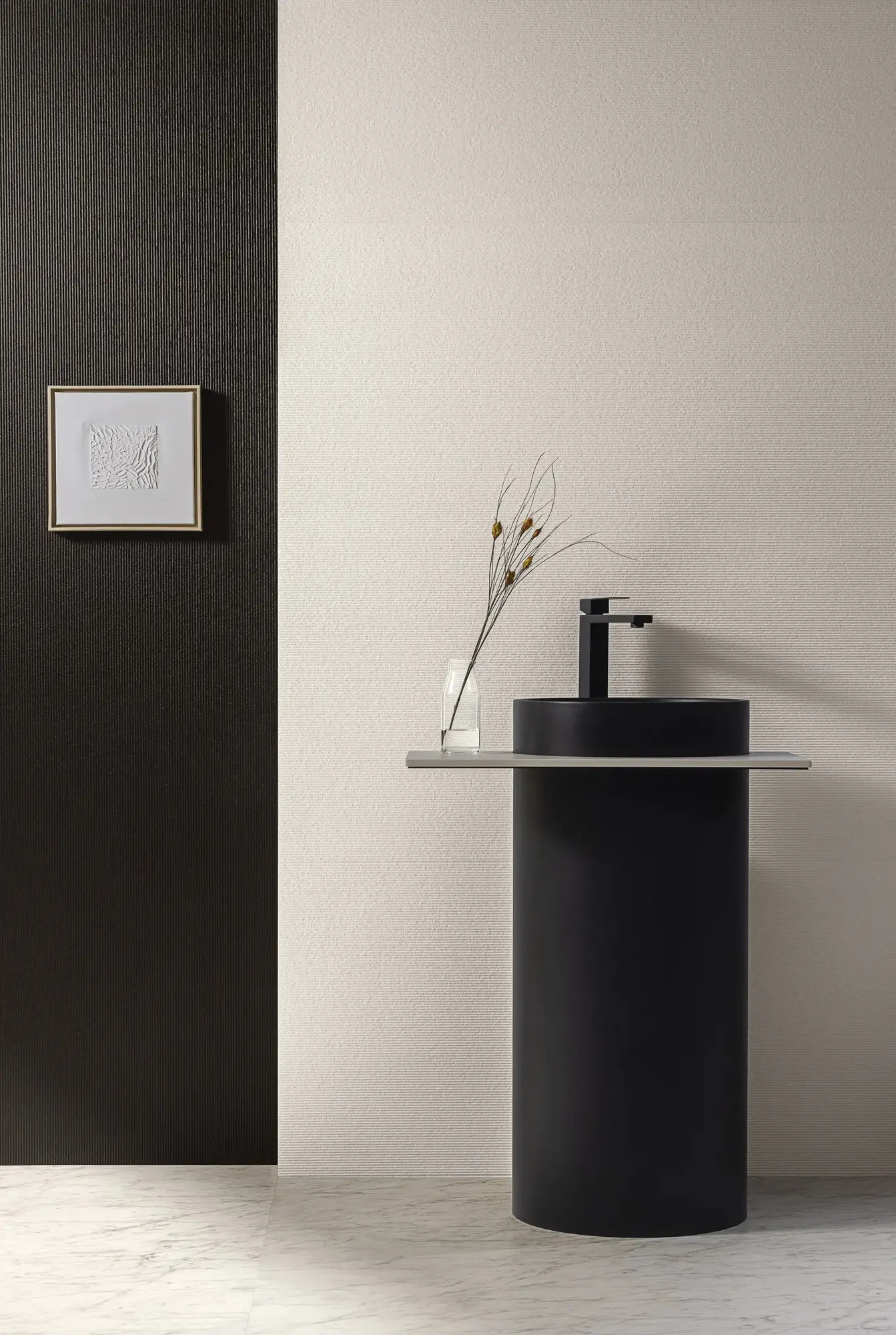 A highly resolved system of reliefs, finishes, and mosaics, translating advanced porcelain technology into unusual depth, versatility, and material presence. Working within an essential palette, it shifts attention from color to the expressive power of surface, where texture, gloss, grain, and form come together in a sensorial language that expands compositional freedom and brings a bold architectural character to contemporary interiors.
